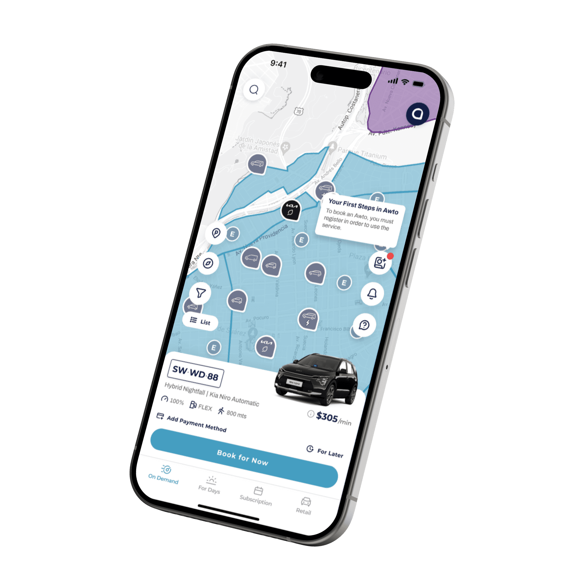 Es una app de Carsharing que permite arrendar vehículos por el tiempo que se necesite (minutos, días o meses), facilitando una solución flexible y conveniente para viajar.